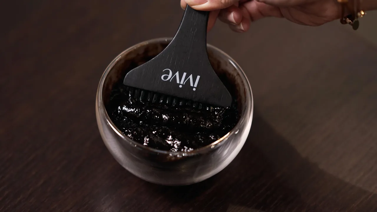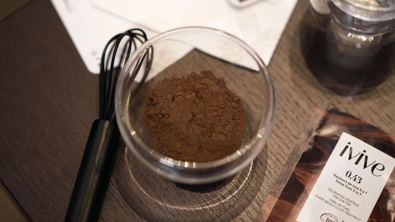 Nach einer gründlichen Haarwäsche mit einem Tonerde-Shampoo, das Schmutz entfernt, wird die pflanzliche Farbe auf das nasse Haar aufgetragen: Sie wird aus einem mit heißem Wasser vermischten Pflanzenpulver hergestellt und hat eine sehr angenehme Textur, die an ein warmes und umhüllendes Gelee erinnert. Anschließend werden eine Kappe und eine Haube aufgesetzt, um die Hitze zu verteilen und die Pigmente im Haar zu verteilen.