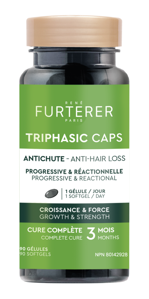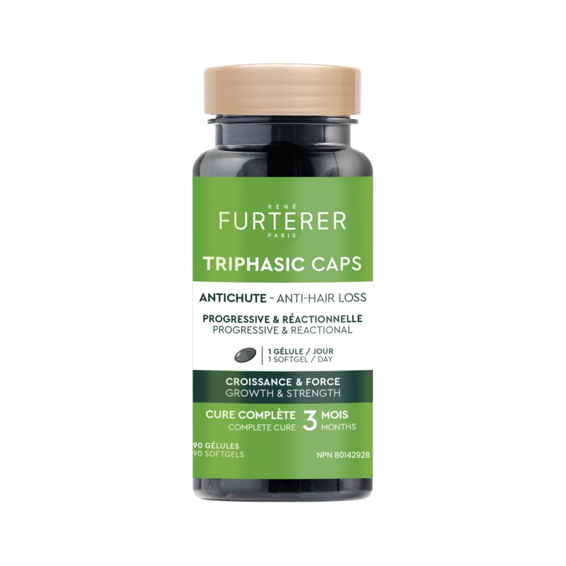 This Triphasic Caps pro-density dietary supplement promotes hair vitality with horsetail extract and slows down loss of density with Florida palm oil and by providing essential nutrients. The vegan formula, encased in a vegetal origin charcoal envelope. Take one capsule daily with a glass of water for a recommanded 90-day regimen.