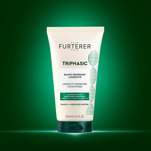Il primo balsamo densificante di René Furterer che agisce sulla caduta ormonale ed ereditaria dei capelli per -44% di rottura dei capelli** e una maggiore longevità.